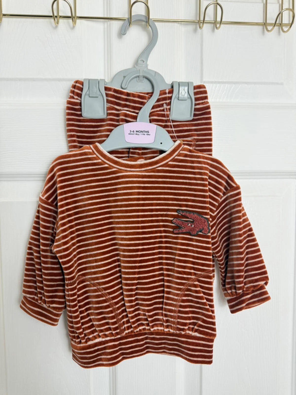 NEW Ex M&S Burnt Orange Velour 2 Piece Outfit Boys 3-6 Months