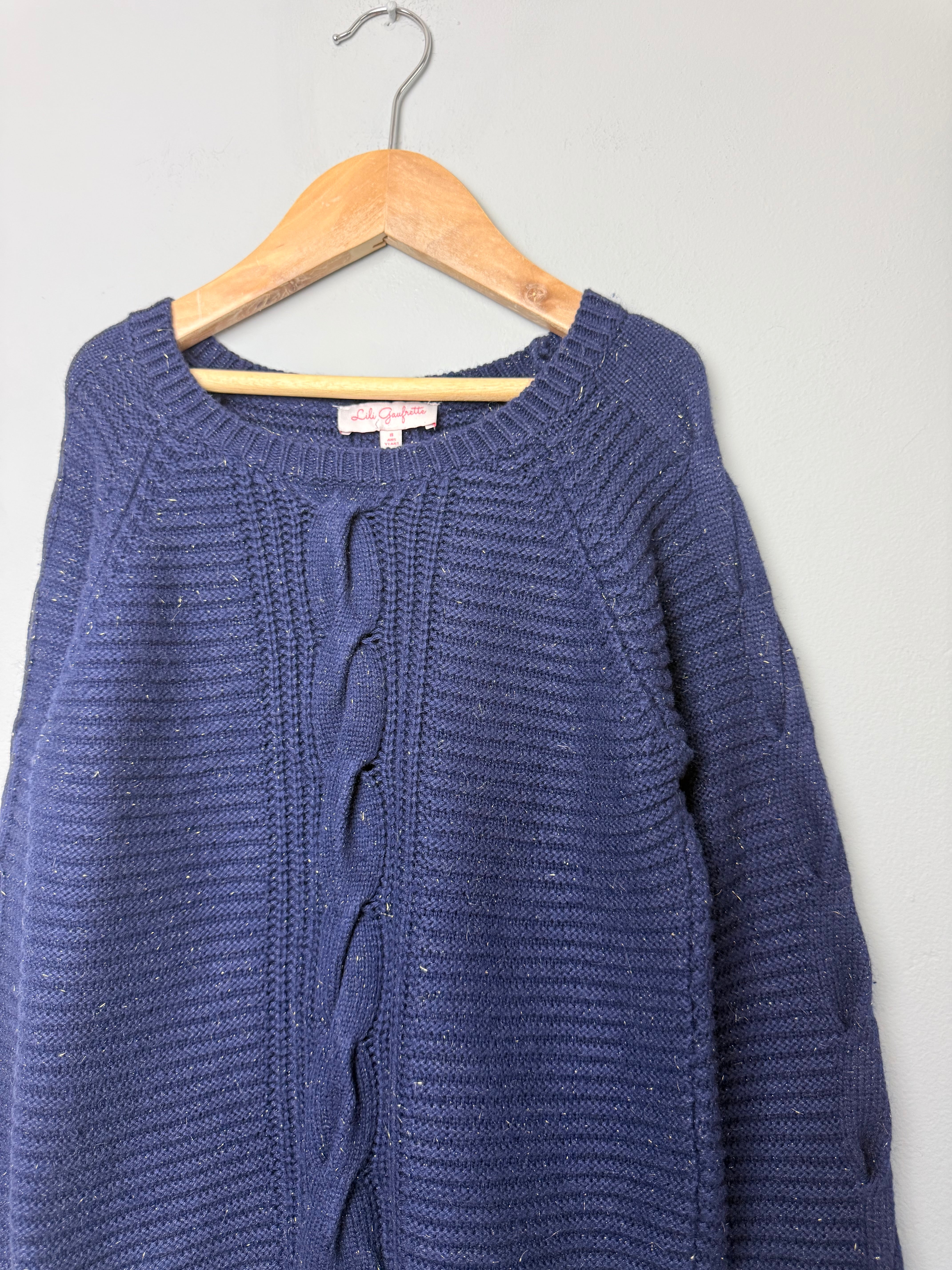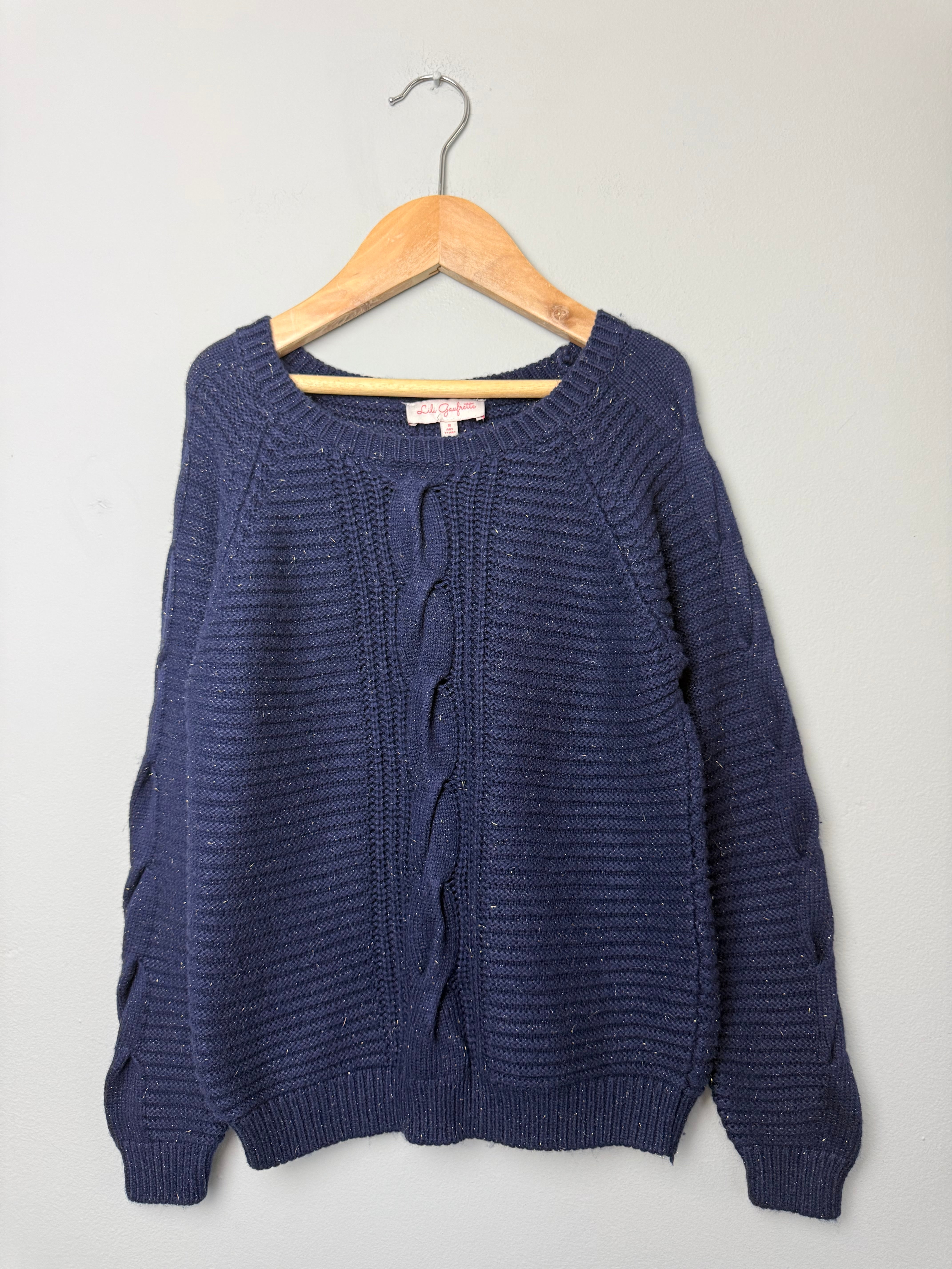 Lili Gaufrette Navy & Gold Thread Knit Jumper - Girls 8 Years