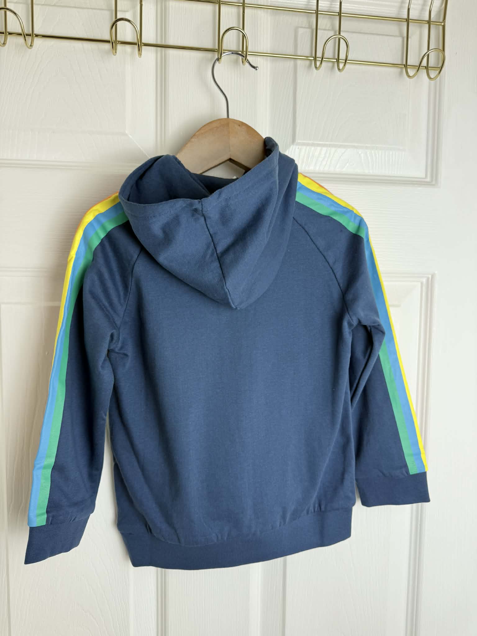 Made from a soft and comfortable fabric, it’s ideal for everyday wear, playtime, or layering on cooler days. Finished with a cosy hood and ribbed cuffs and hem. New with original tags attached – never worn.